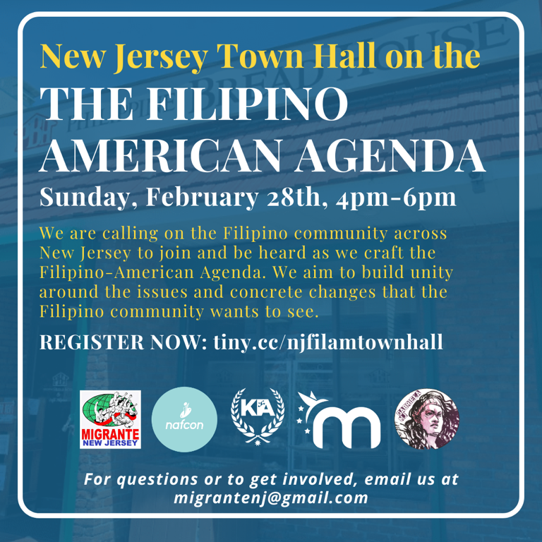 For more information and/or questions, please email us at migrantenj@gmail.com. Maraming salamat po and we hope to see you at the townhall.